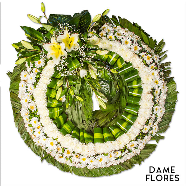 Corona de Condolencias Blanca Grande, incluye: