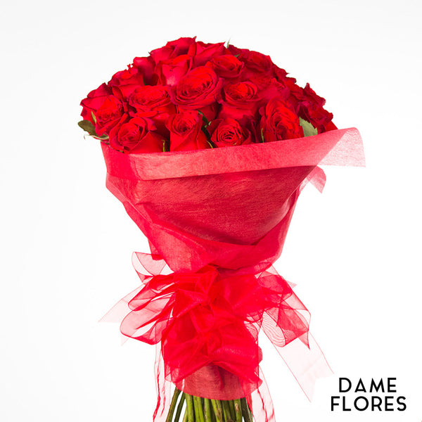 Ramo de 12 hermosas Rosas rojas envueltas en papel coreano y moño rojo